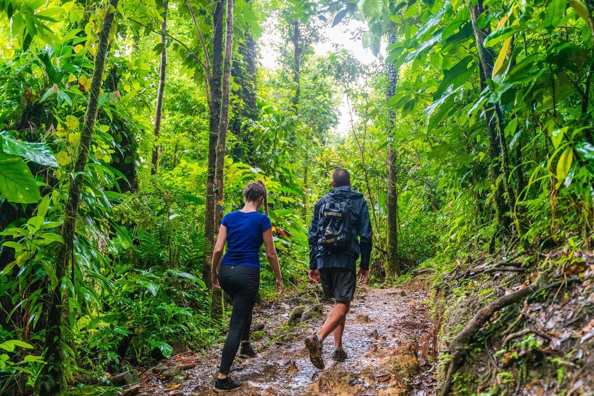 Walking through rainforest: